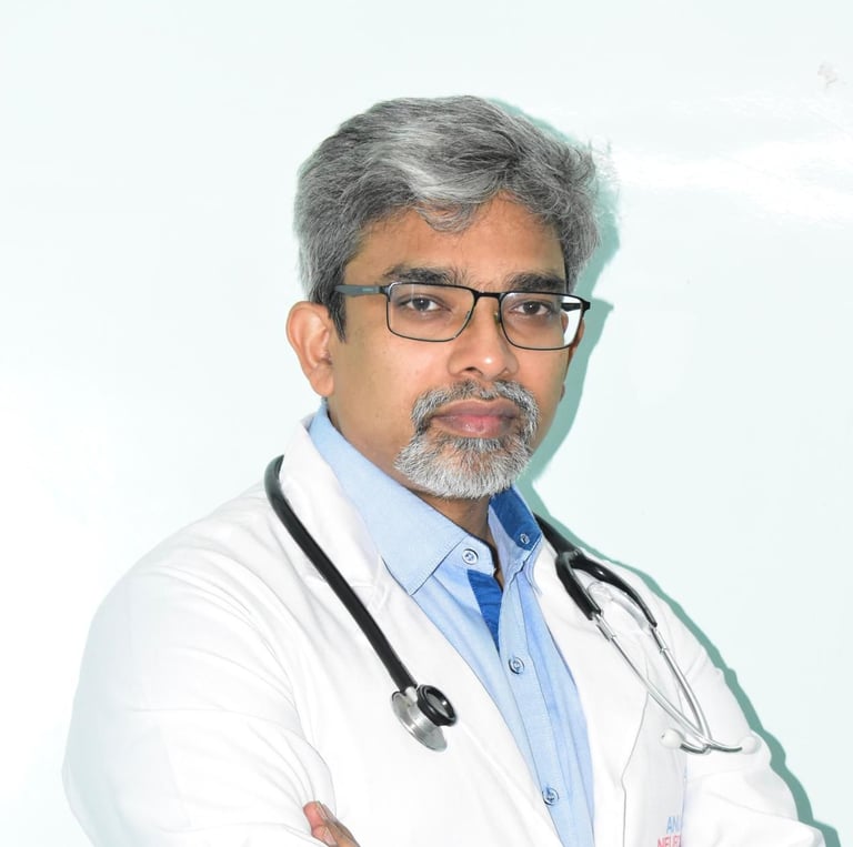 Dr G. Ravi Kumar Is distinguished interventional cardiologist based in Visakhapatnam, renowned for his expertise in advanced imaging and interventional procedures. He completed his under graduate medical studies from Ranga raya medical college. pursued his post graduation from Andhra medical college in general medicine and after completion of MD he joined as assistant professor in general medicine in Ranga Raya Medical college and trained students in basic medical skills. Later he joined DM in cardiology in Andhra medical college.